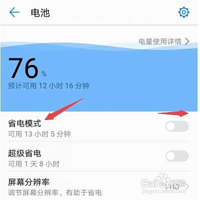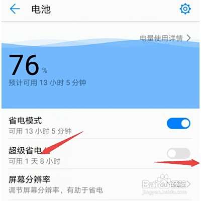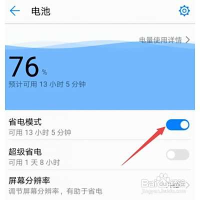 7、还可以选择超级省电,我们将超级省电的开关向右滑动打开就可以了。