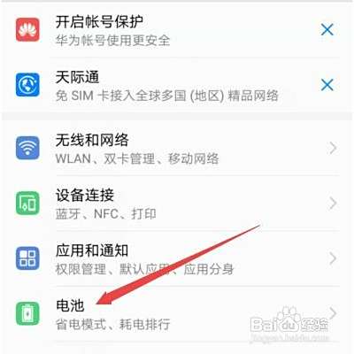 1、在手机设置中找到电池。