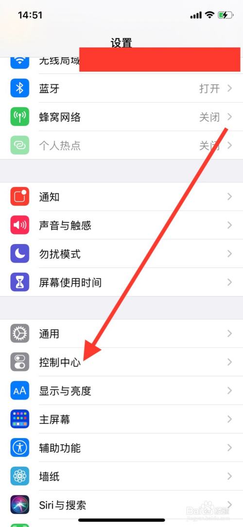 设置页面点击“控制中心”。