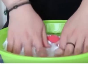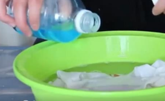 准备好清水一盆待用,在清水中加入适量食盐,食盐可以有效地清除衣服上地蔬菜汁液。