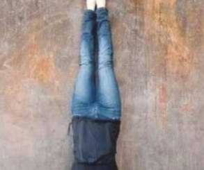 感觉自己头朝下已经习惯了,胳膊也有了力气,就可以把腿伸直,但还是双臂撑地,脚和墙是挨着的,这样可以分担一些身体的重量。