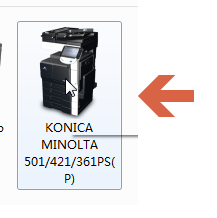 在柯尼卡美能达501/421/361PS打印机图标上点击鼠标右键。