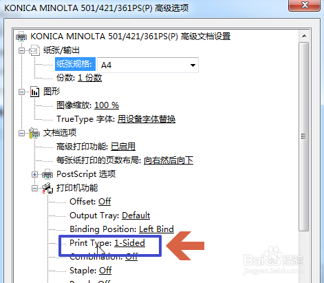 介绍KONICA MINOLTA 柯尼卡美能达501/421/361PS打印机怎么双面打印,以供参考。