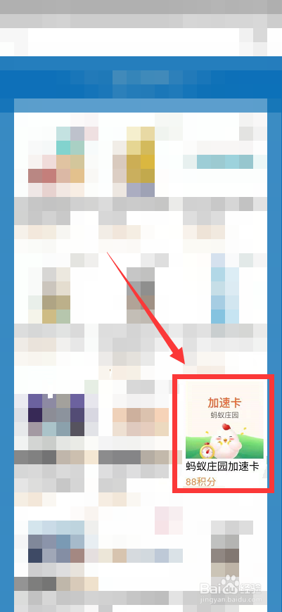 把页面往下拉,点击【蚂蚁庄园加速卡】