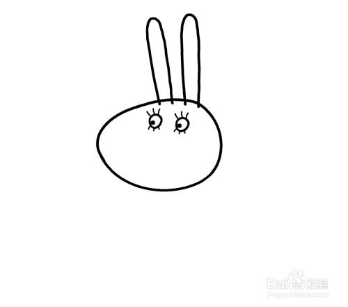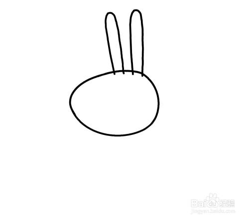如图,先画出兔妈妈的头部轮廓。
