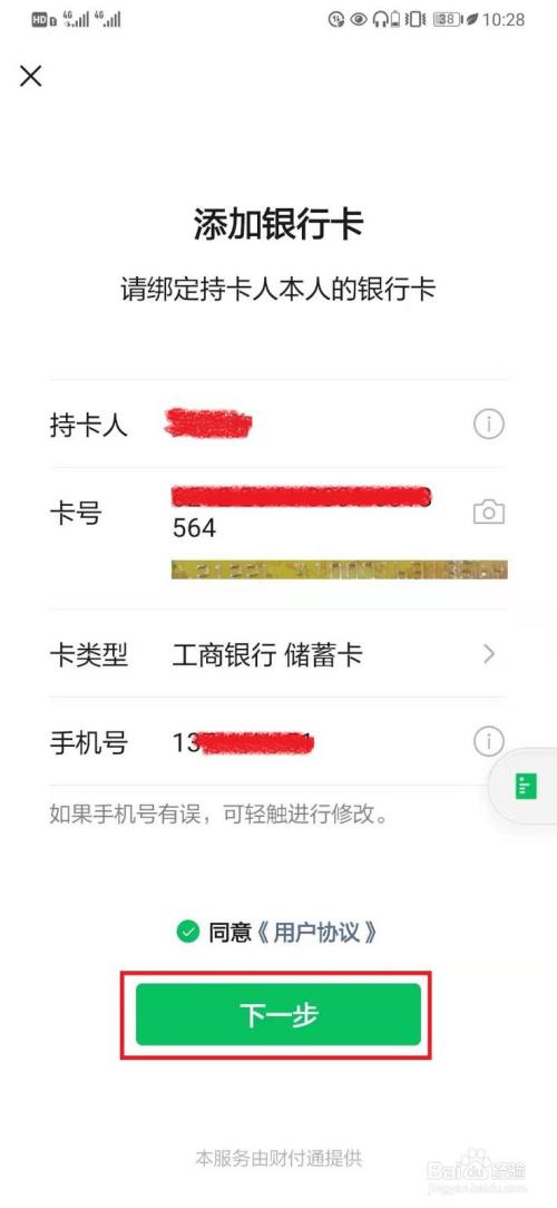在添加银行卡页面,输入并验证绑定的银行卡,点击【下一步】。