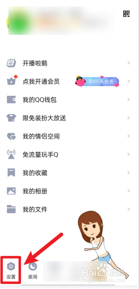 打开手机QQ,点击左下角设置。