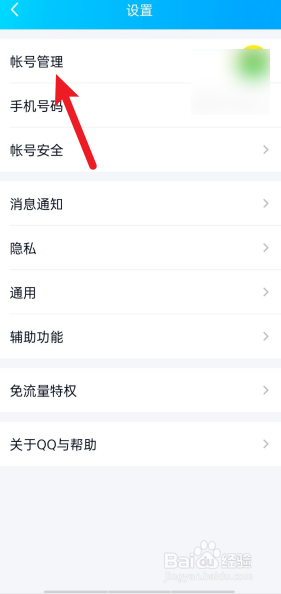 进入设置,点击帐号管理。