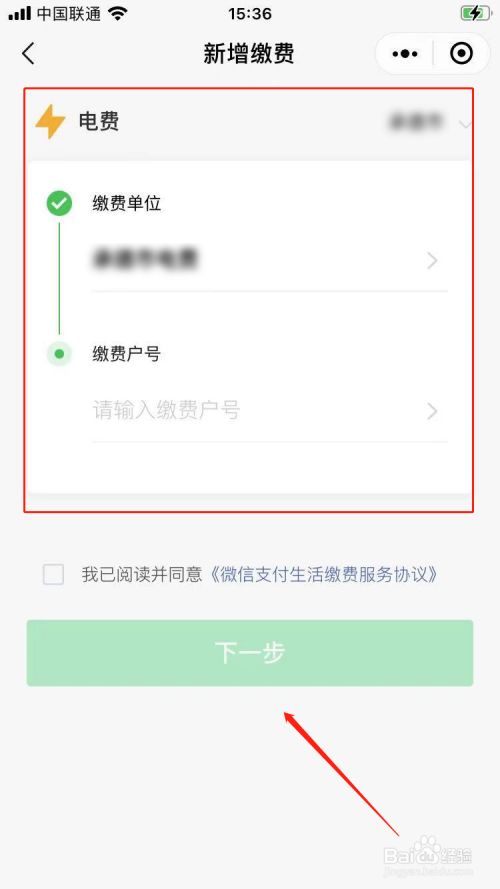 在电费缴费页面中,输入缴费户号,点击下一步按钮就可以交电费了。