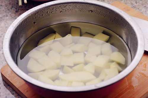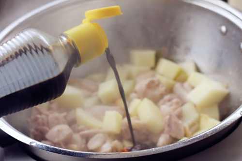 9加入适量的水,半掩盖土豆即可倒入生抽、盐。