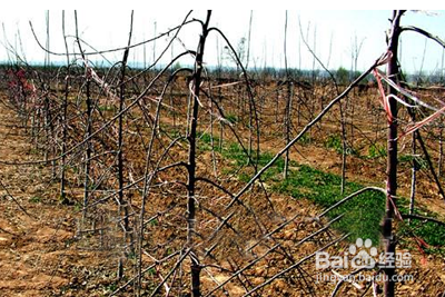 2.第二个方法。对果树苗进行签条爱画图里。就是把生长的枝条通过牵拉的方法使它们进行矮化。这样做的好处不仅能够矮化,而且能够促进侧枝分芽多结果。