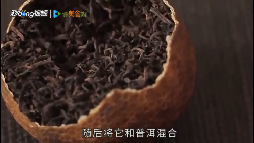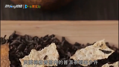 碎皮饮用法:将柑普茶内的普洱茶倒出少许,将柑皮碾碎至若干小块。