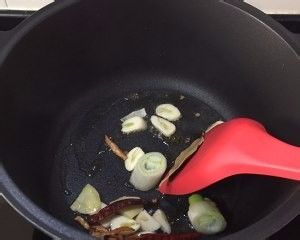 等到冰糖全部融化,出现焦糖色,放入所有调料炒香。