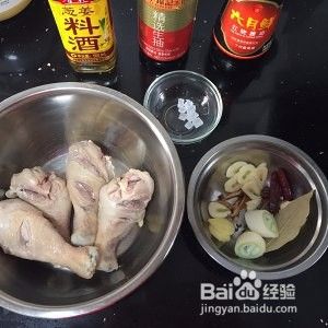所有配料如图,鸡腿提前焯水(注意冷水下锅,加料酒少许,姜2片,开锅捞出热水洗净)。