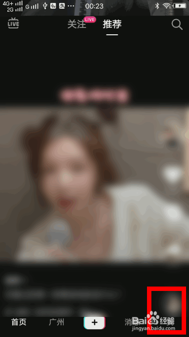 进入抖音主界面,点击右下我,如下图所示。
