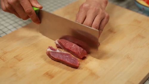 4将整块牛肉切成小块。