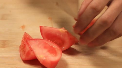 3将西红柿切成小块。