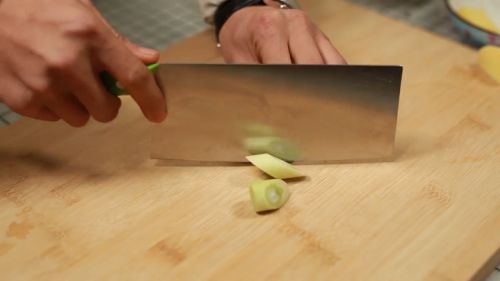 2将洗好的大葱切成段。