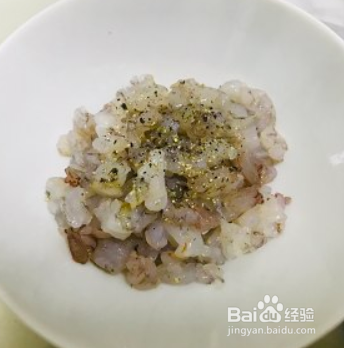 把虾剁海贪蹲成小块块 虾仁不需要剁碎,这样吃起来才有感觉呀扯伐!