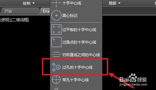 点击下拉按钮,点击“过孔的十字中心线”工具。