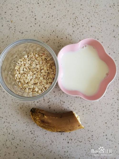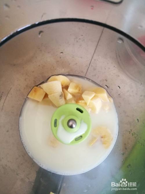 煮熟的燕麦保留少许水分,和香蕉牛奶一起倒进辅食机搅打。