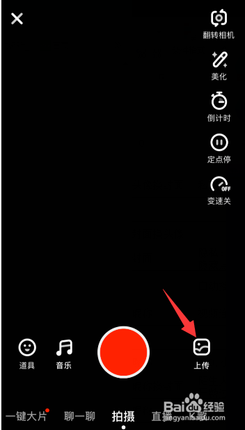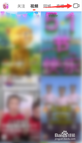1、打开抖音火山版软件,点击右上角摄像机图标