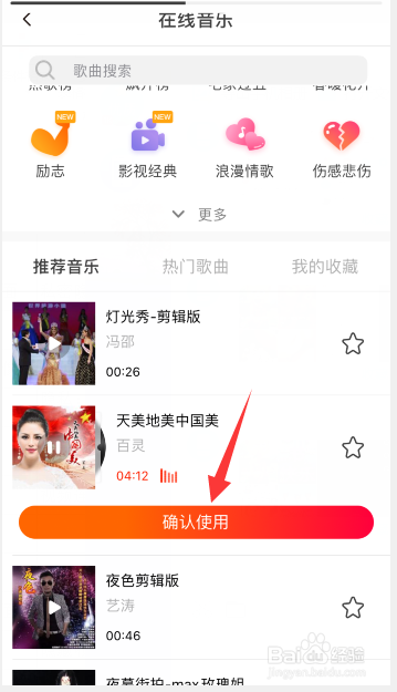 点击“确认使用”就添加上了背景音乐,然后继续把视频发布即可