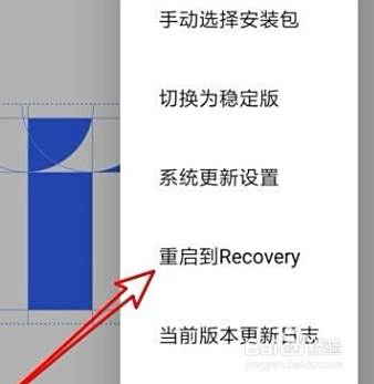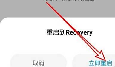 在弹出的菜单中点击重启到Recovery的菜单项。