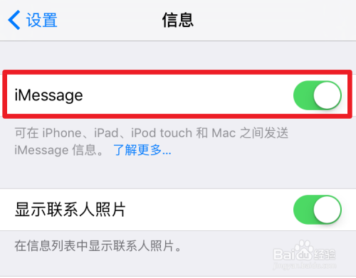 首先打开【设置】-【信息】,将iMessage打开后