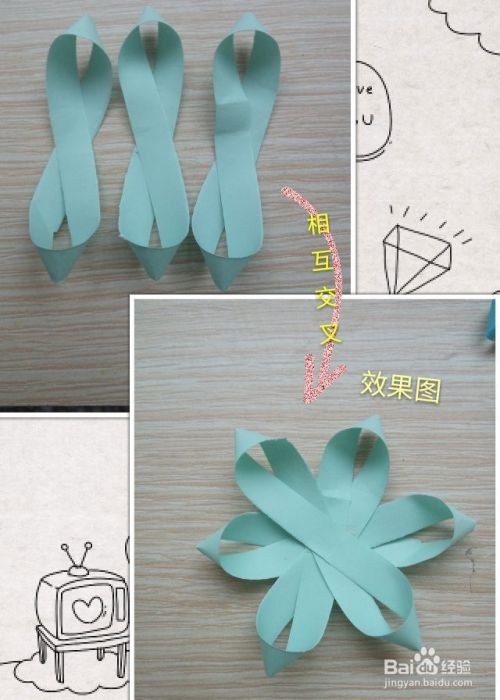 取出其中三艘稍大的“小船”,并将它们互相交叉叠合,得到一个“六瓣花朵”!效果如下!