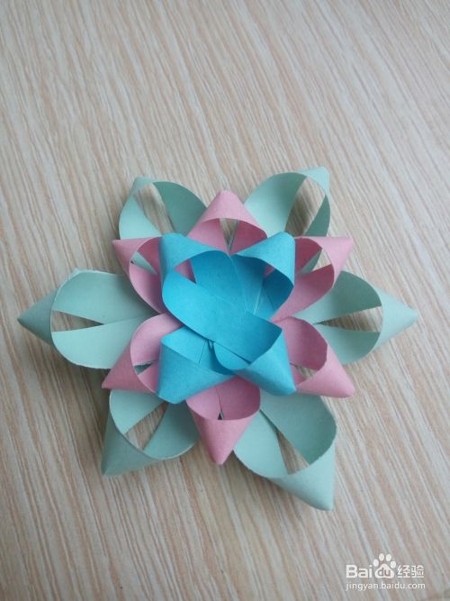 再取出其中三个相对小一号的“小船”按相同方法折叠出小一号的“六瓣花”!效果如下!
