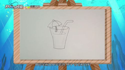 1用铅笔画出小雨伞装饰、杯子、吸管和饮料。