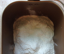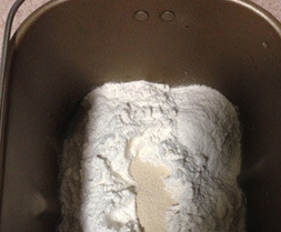 首先先将牛奶、酸奶、奶粉、盐、细砂糖放在面包桶底部,