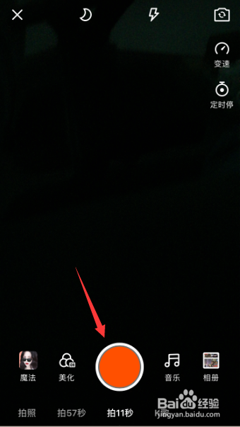 首先,打开一个的快手视频app的界面中,点击右上角中的 录制 选项