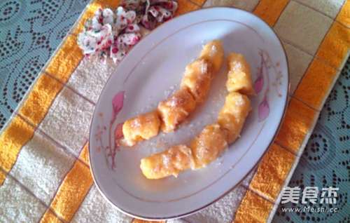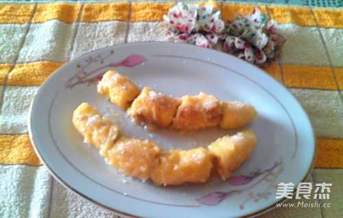 香蕉沾裹上面糊之后放锅里煎过的味道特别美味,香蕉吃着又香又甜,外面那层煎过的面糊有点脆又有点Q。小的时候就特别爱吃了,经常让老妈做给我吃的。直到现在还是非常喜欢,不过每次都是图方便,想吃的话直接到楼下烧烤店打包,自己动手在家做的还是头一回呢,有了这次的实验,相信以后会多多行动的。