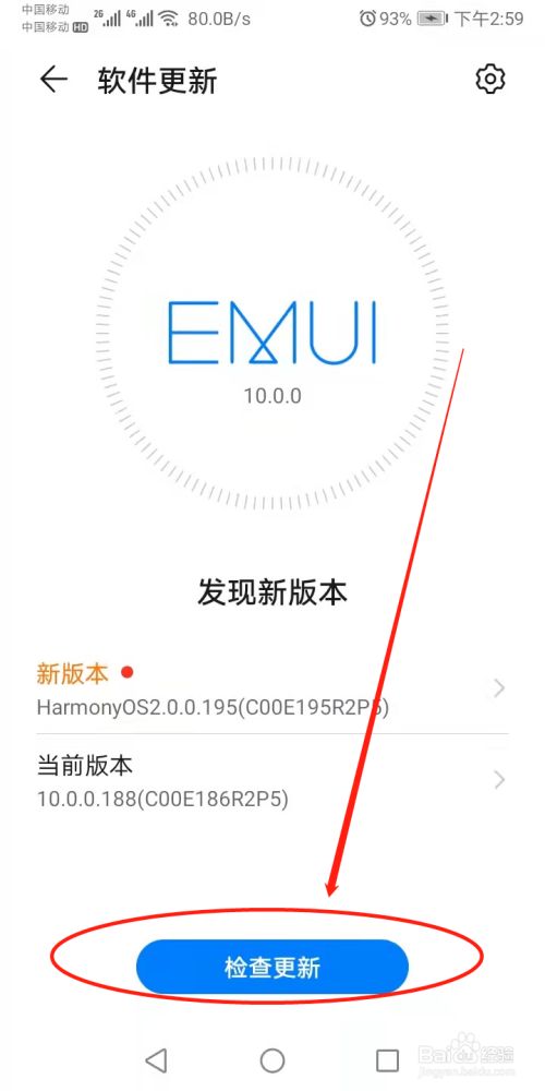 点击「检查更新」,这里可能会先检查到一个小的系统补丁,这个补丁就是为升级鸿蒙系统做准备的,下载安装好这个小补丁后,再次点击「检查更新」,如下图: