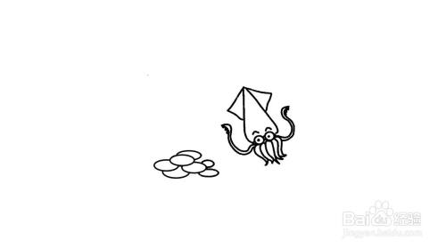 乌贼旁边画上一堆鹅卵石。