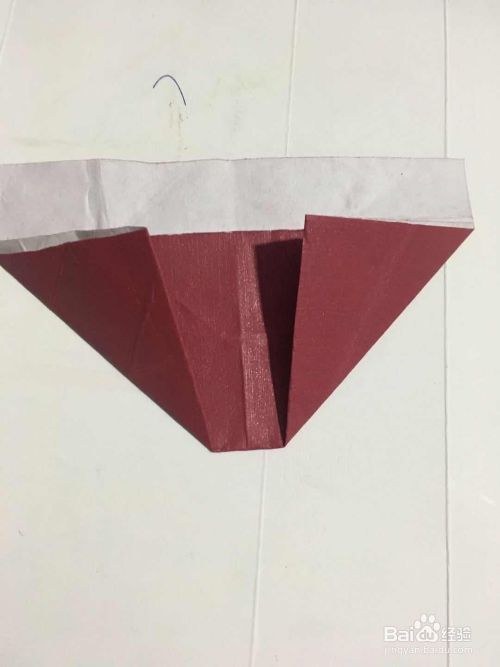 第五步 折叠完之后取开 按折痕向里回折 然后左右折叠成为两个立起的三角