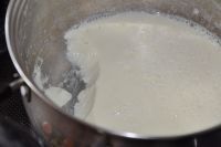 关火使豆浆的温度降到80-90度左右倒入内胆水,并用勺不断从上到下翻匀。
