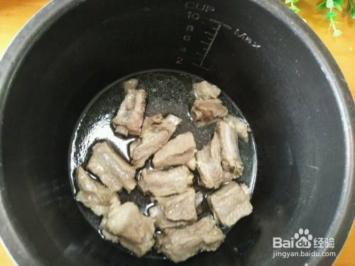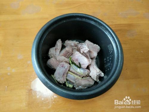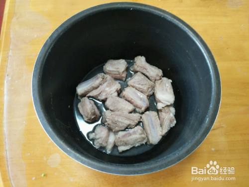 排骨捞出(不要佐料)放电压力锅内,加少许清水,压制15分钟。