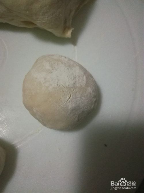 用手掇圆上下裹一点面粉,这样不易粘锅