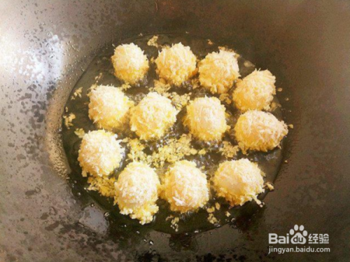 所有的鹌鹑蛋按照上面的方法,全部依次沾满面粉、鸡蛋液、面包糠。