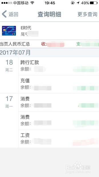 接着进入“查询明细”页面后我们就能看到当月的全部交易明细了。