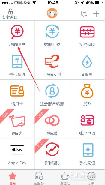 登录自己的银行帐号后,接着点击主页中的“我的账户”按键。