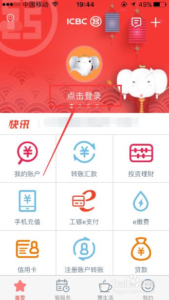 此时会进行最新版手机工商银行的主页,在这里我们会看到主页跟以前比还是有区别的,接着我们点击“点击登录”按键。