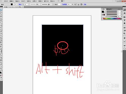 第五步:按住alt+shift不放就会以中心点向外绘制等比例图形。