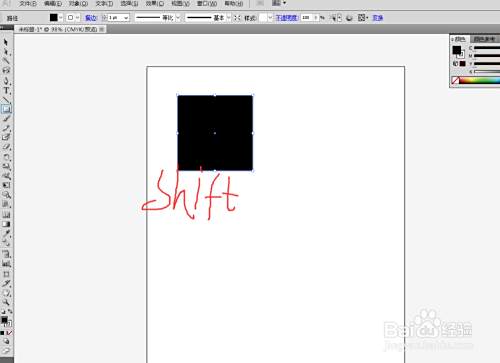 第三步:按住shift不放单击鼠标就会绘制一个正的图形(等比例图形)。左上角为固定点。