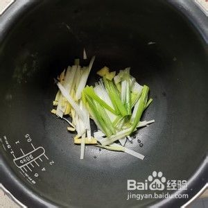 然后电饭煲底部放入适量葱姜丝准备下一步