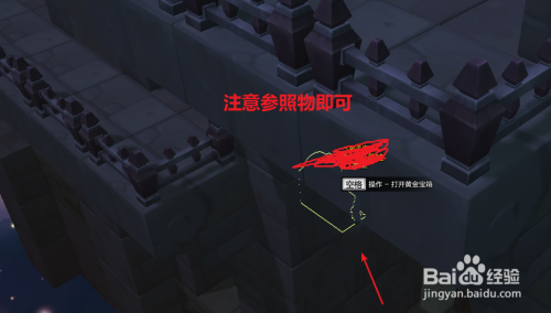 1号位置的黄金宝箱位置在望远镜下方,两个梯子的中间,梯子可以作为其参照物。