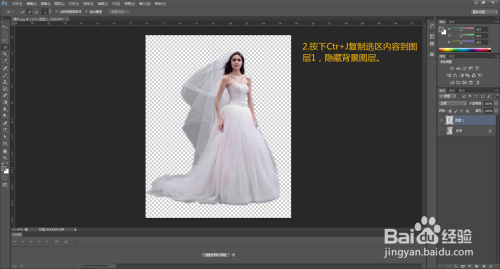 拿下Ctr+J复制选区内容到图层1,隐藏背景图层。